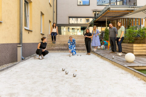 In unserem grünen Innenhof können Sie sich einmal so richtig auspowern und währenddessen sogar noch das schöne Wetter genießen. Badminton oder Boccia? Minigolf oder Yoga? Auch Battle Ropes, Widerstandsseile und TRX-Bänder stehen für Ihr Konditions- & Krafttraining im Freien zur Verfügung. Fragen Sie unsere Service-Mitarbeiterinnen und Mitarbeiter nach dem kostenlosen Equipment.